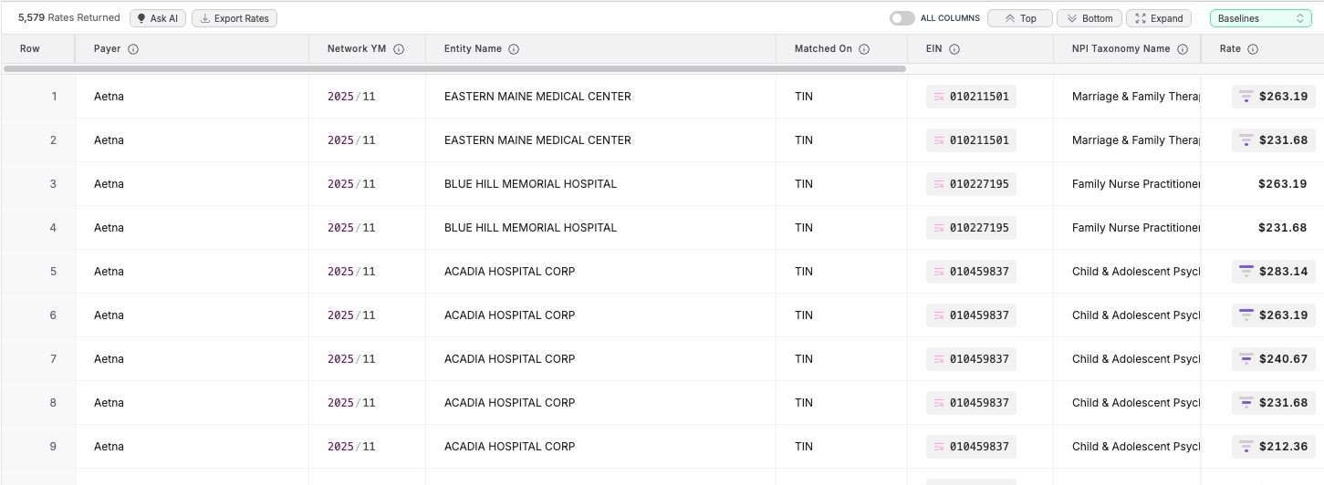 - For restoring searches that contained specific providers, the UI will populate the list of NPIs and EINs used to query the data. For more information on how to crosswalk between NPIs<>provider-names<>EINs, please read our provider search guide.