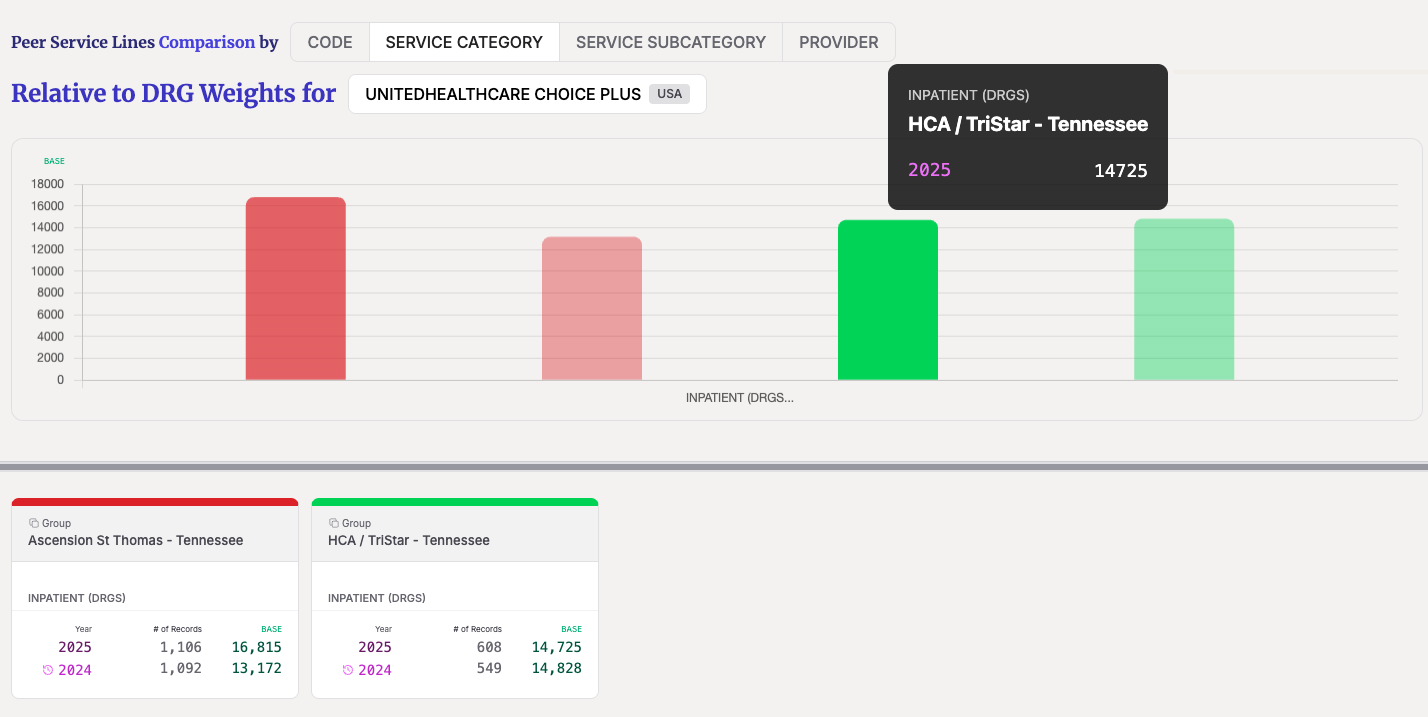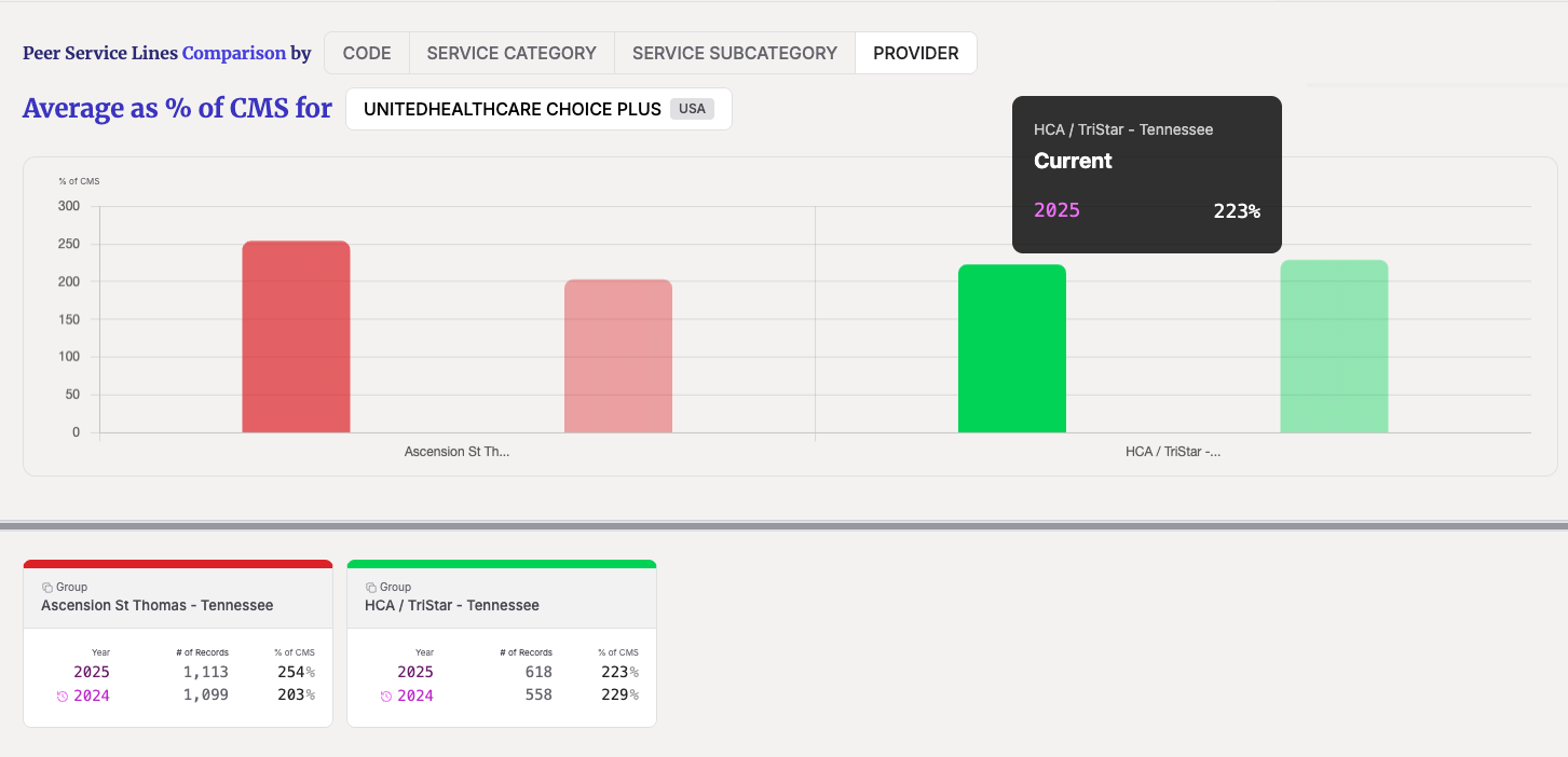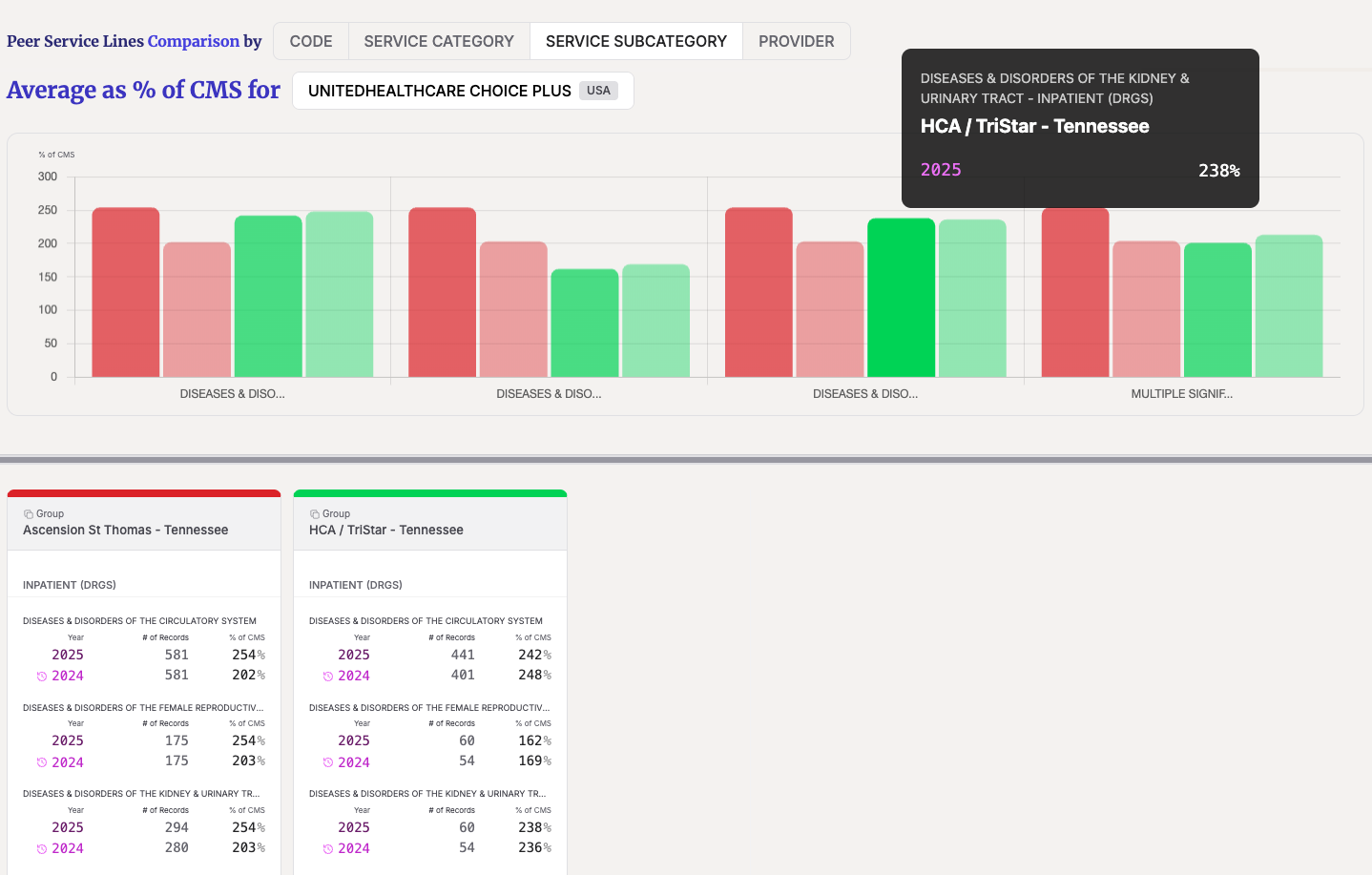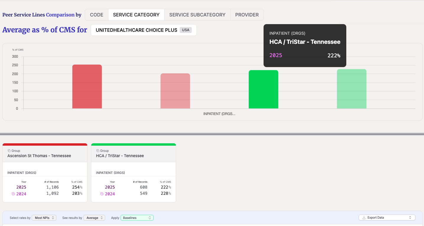 - Comparing provider groups' rates across entire service lines, not just at the code level?